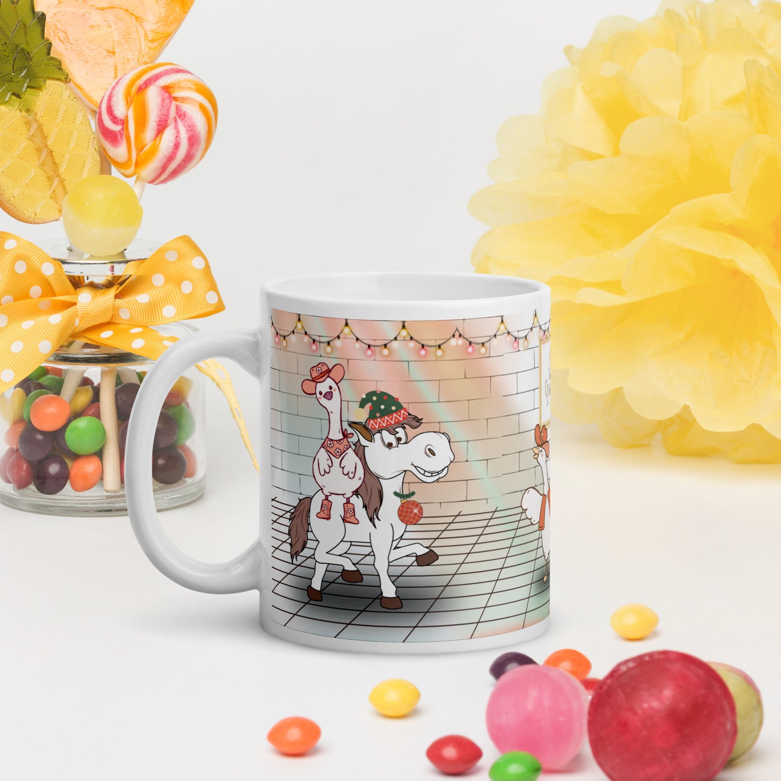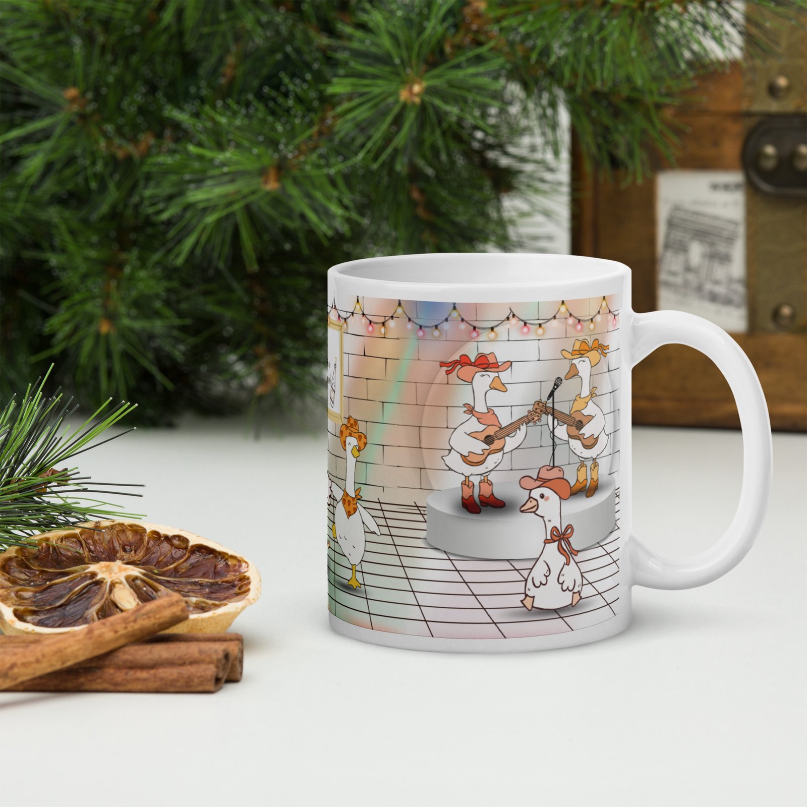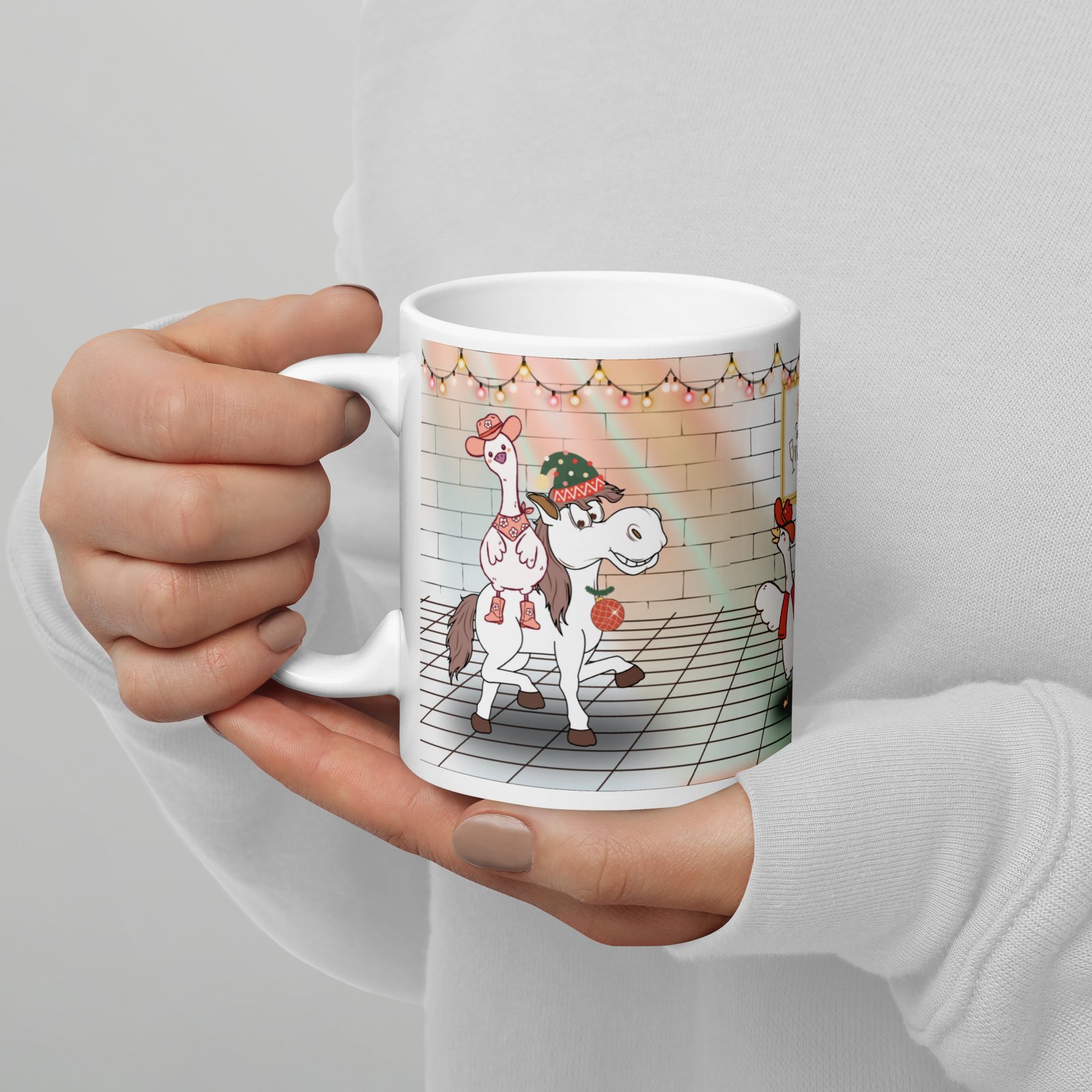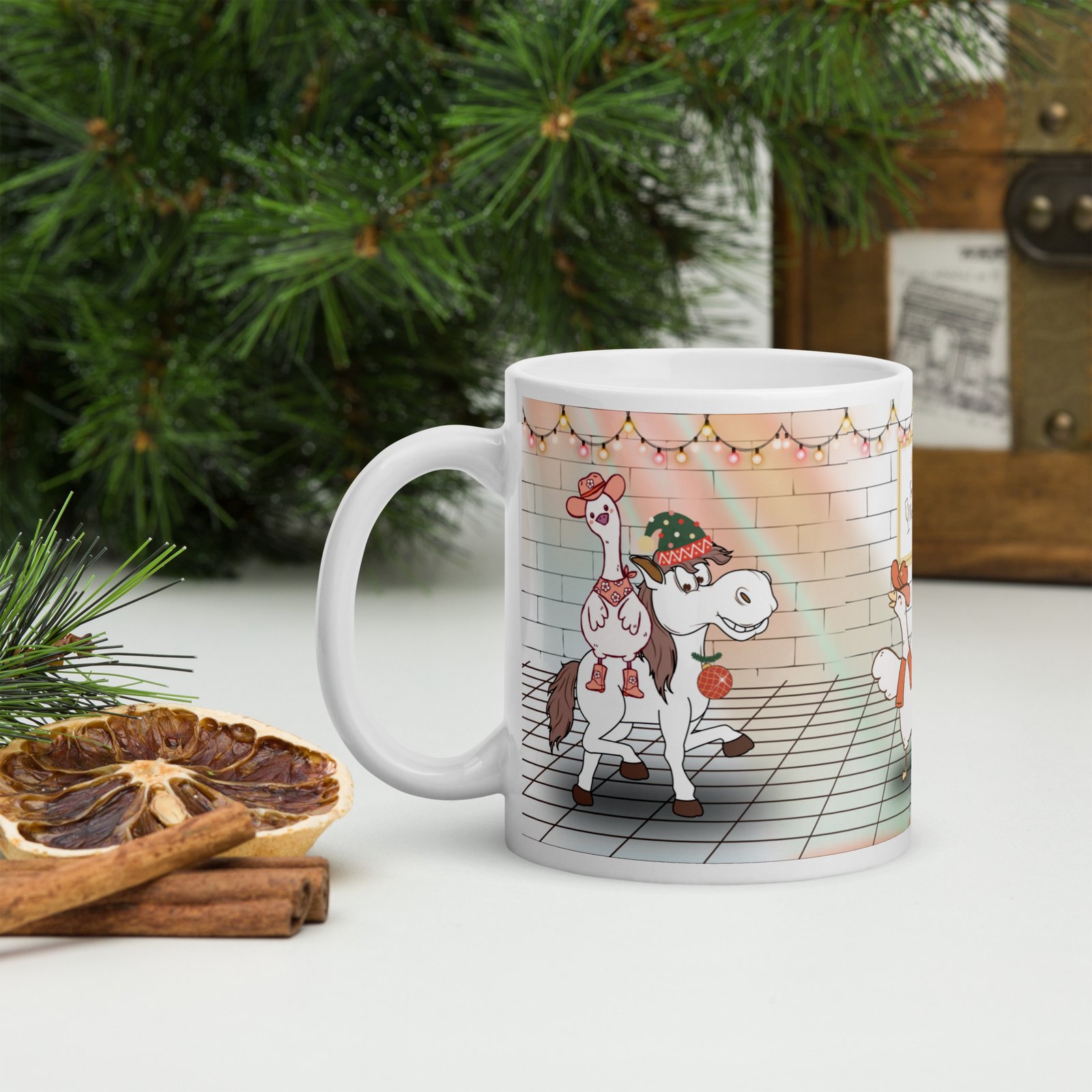 This mug brings festive cheer, rustic charm, and a touch of wild farm humor to your morning coffee or evening cocoa.